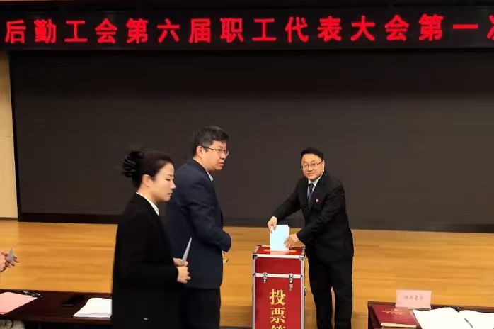 换届大会在歌唱国歌中拉开帷幕,会上后勤服务集团总经理李浚同志作了《学校后勤“十四五”发展规划总结报告》,后勤党总支书记付国柱同志作了《后勤工会第五届委员会工作报告》,后勤保障部副部长周昕同志宣读了《后勤工会关于调整劳动争议调解小组成员的意见》,工作人员宣读了《后勤服务集团非事业编制人员管理规定》、《后勤服务集团值班津贴发放管理办法》制度修改情况说明,通过了大会选举办法。大会等额选举产生了第六届职工代表大会常设主席团成员,差额选举产生了第六届分工会委员会委员。