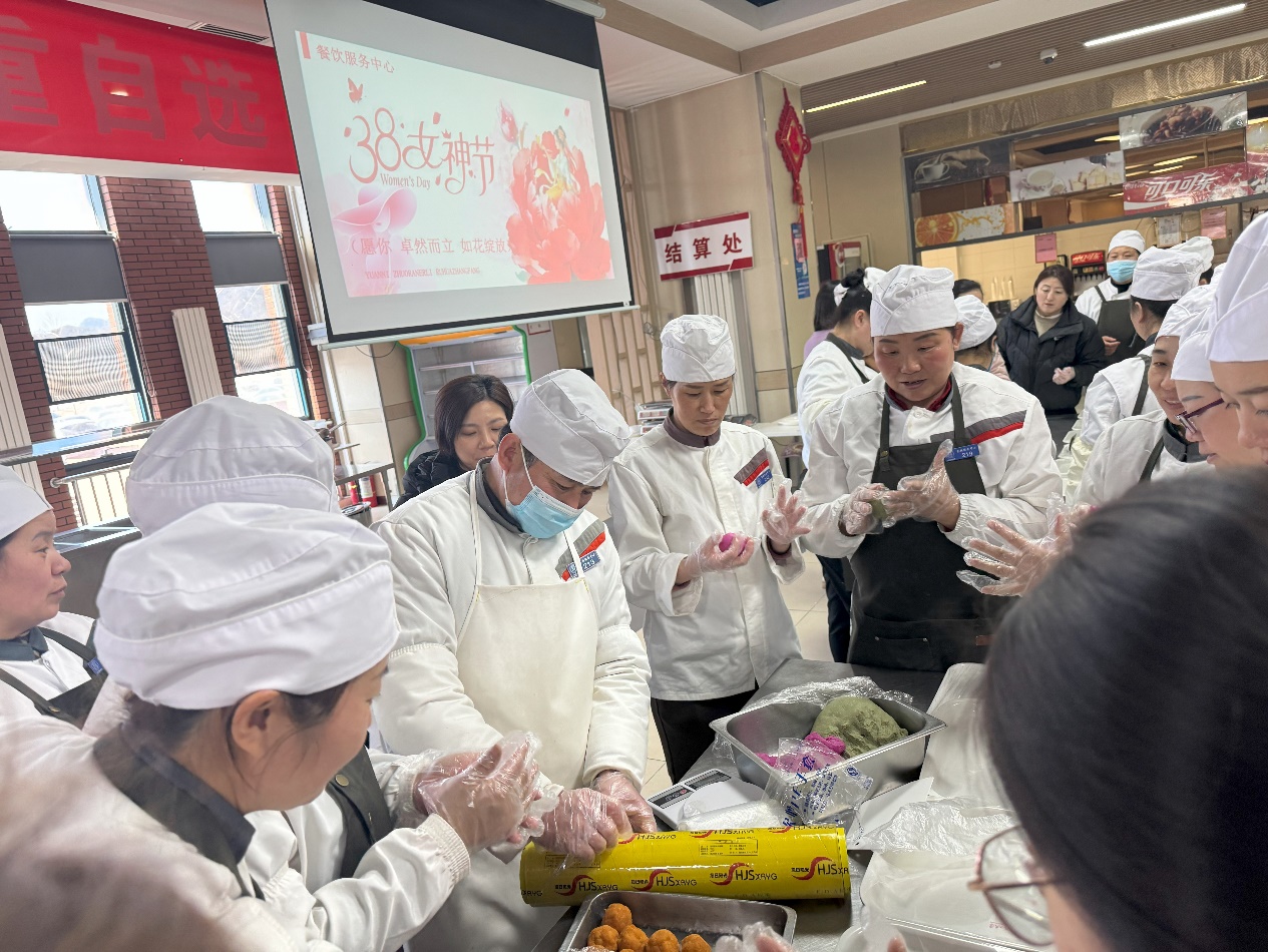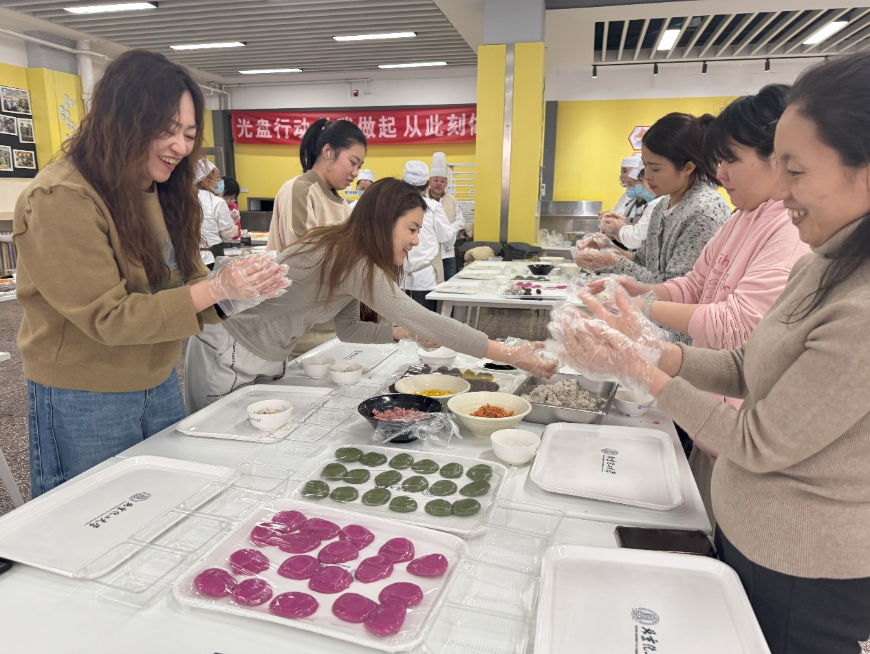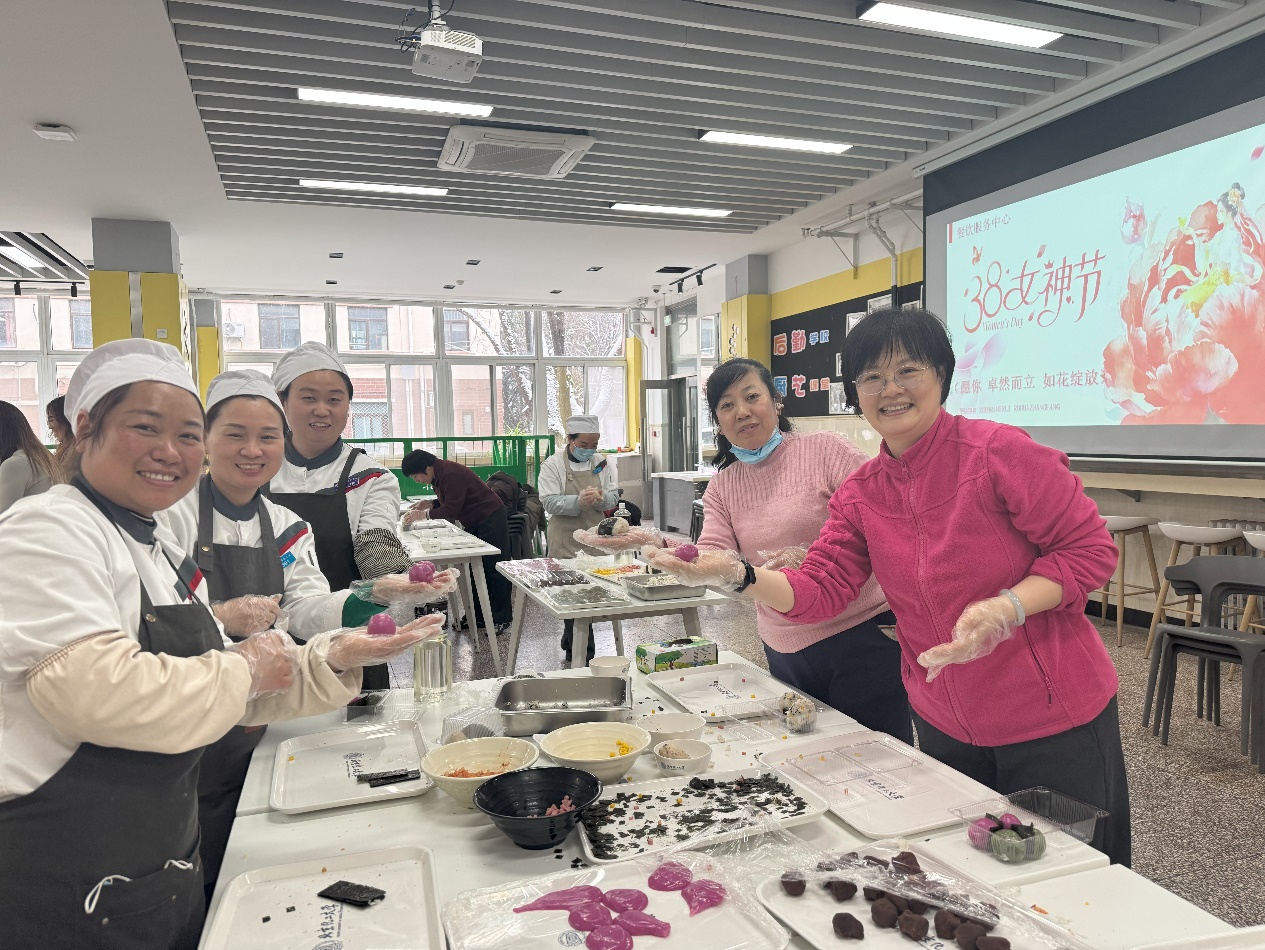 春归万物生,美好伴芳华。为庆祝三八国际妇女节,致敬全体女员工的辛勤付出,传递关怀与温暖,餐饮服务中心党支部联合集团机关、交通联合党支部、商贸中心党支部,分别于3月5日、3月6日在两校区开展“春韵伴食光,青糯赴欢喜”三八节女员工青团+饭团DIY活动主题活动,全体女员工欢聚一堂,在指尖的创意与双重香气中,度过了一个充满仪式感与幸福感的专属节日。
